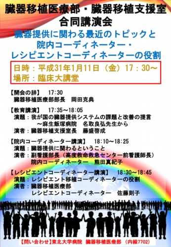 2019.01.11 臓器移植医療部・臓器移植支援室 合同講演会を開催いたしました