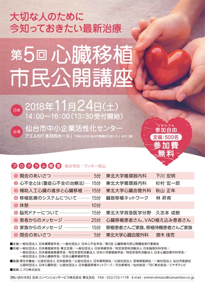 2018.10.30 第5回心臓移植市民公開講座のお知らせ