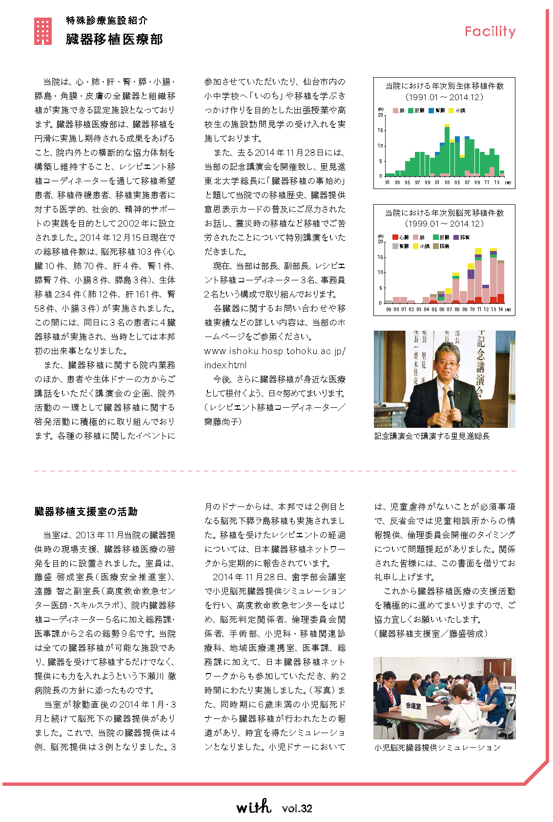 2015.02.16 地域医療連携センター通信「with」32号に臓器移植医療部についてのページが掲載されました