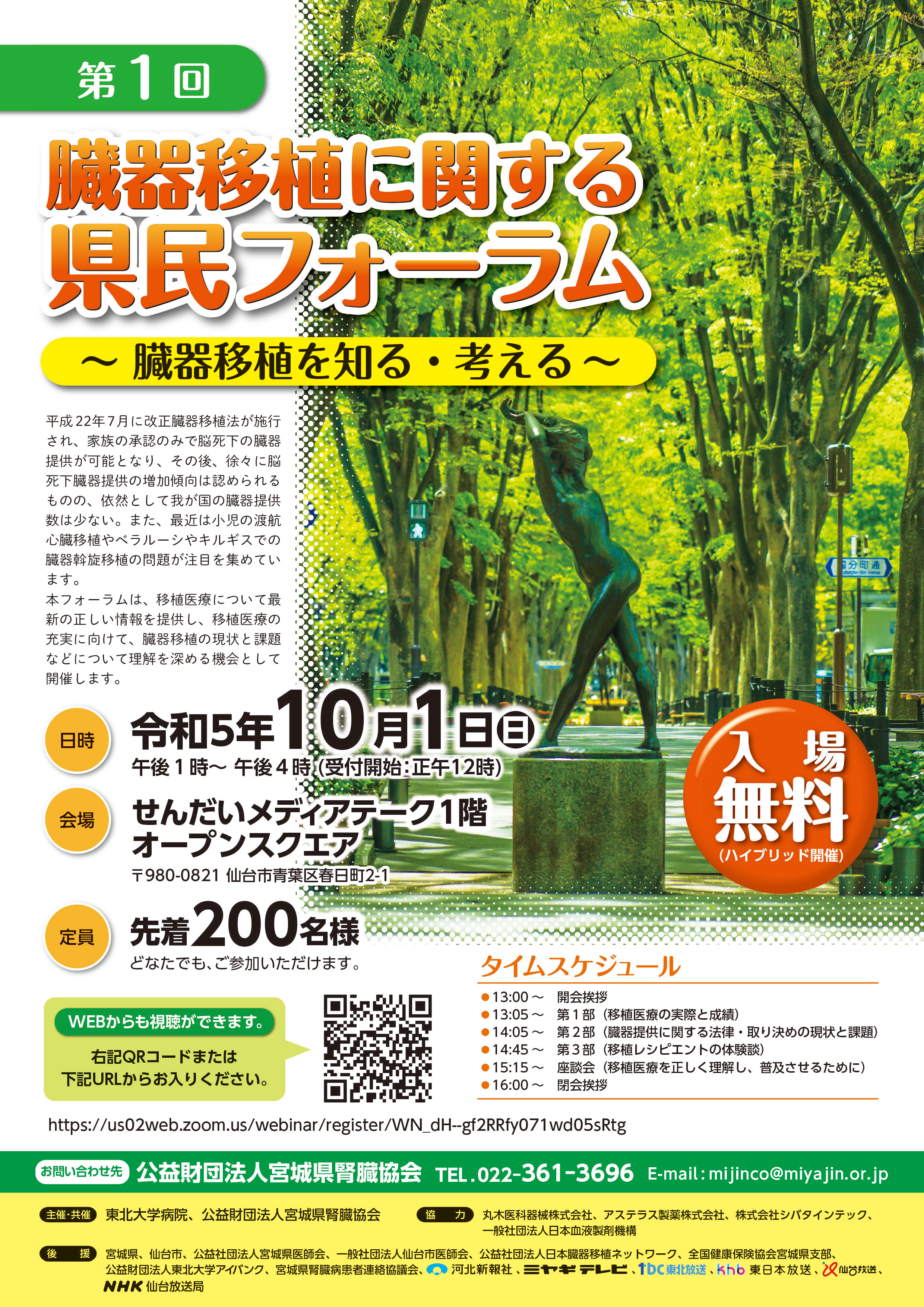 2023.09.06 第1回臓器移植に関する県民フォーラム開催のお知らせ
