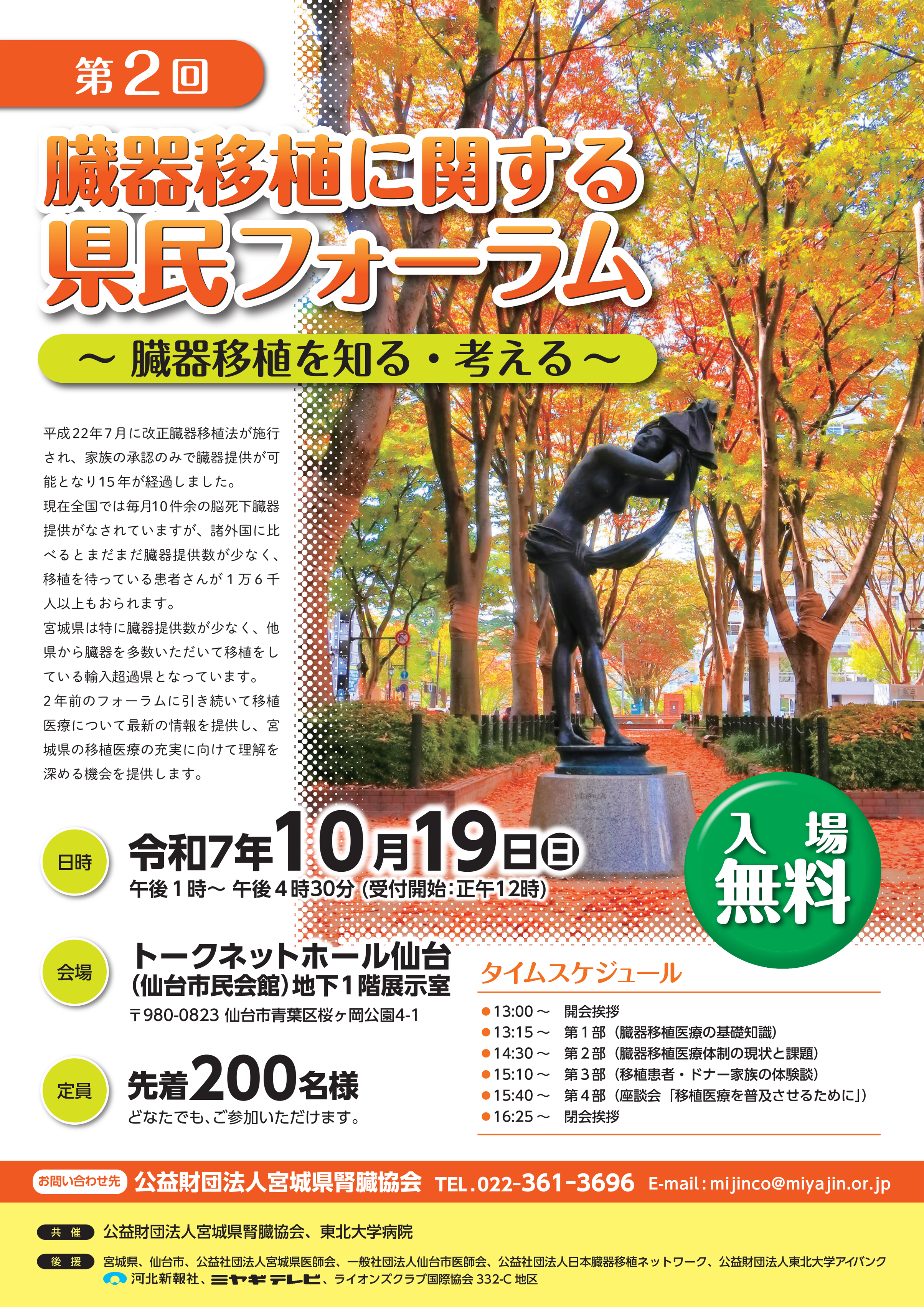第2回臓器移植に関する県民フォーラム開催のお知らせ